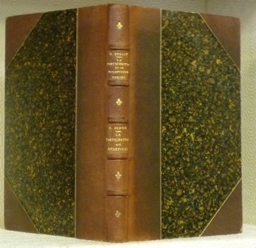 - Plats papier marbré à coins. Auteur, titre, ornementations entrles entre-nerfs dorés au dos. Dos à nerfs.