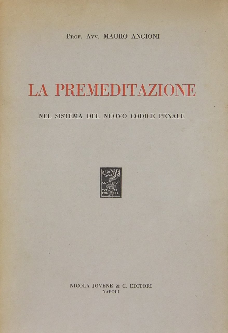 La premeditazione nel sistema del nuovo codice penale | Livres anciens et modernes | Angioni Mauro