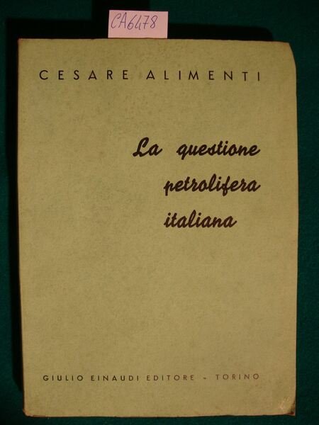 (Collana : Problemi contemporanei - n. XIV) Pubblicazione che tratta i termini della questione petrolifera e dei differenti problemi riguardanti in modo particolare i bisogni per l'alimentazionde ll'autoveicolo - DETTAGLIO DELLE CONDIZIONI : Segni d'uso in coperta con alcune fioriture e danni marginali al dorso; fioriture e gore sparse alle pagg. che tuttavia non ledono la leggibilità del testo - .