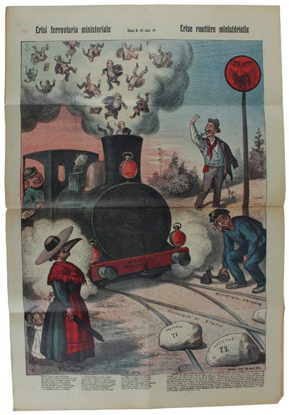 LA RANA - Giornale Umoristico con caricature e disegni a colori. Anno XLI/1905 n. 13: CRISI FERROVIARIA MINISTERIALE