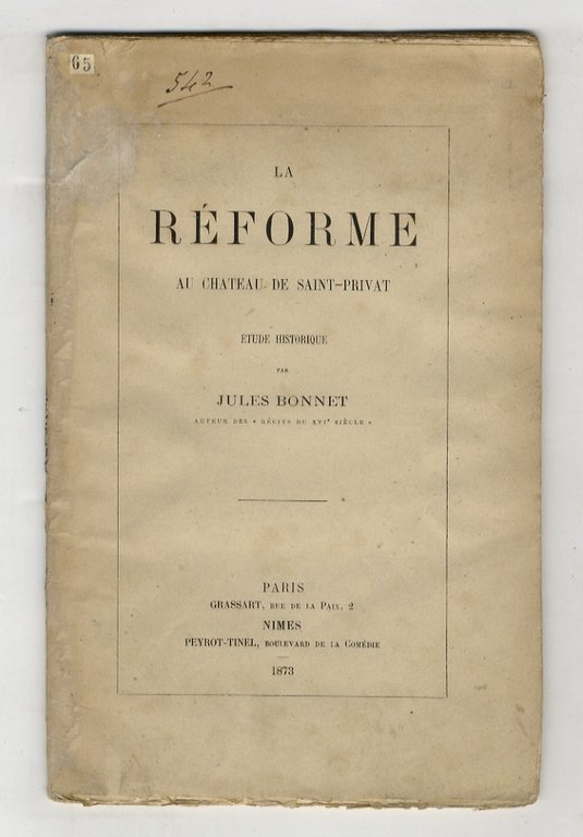 La Réforme au Château de Saint-Privat. Etude historique. | Livres anciens et modernes | Bonnet Jules.