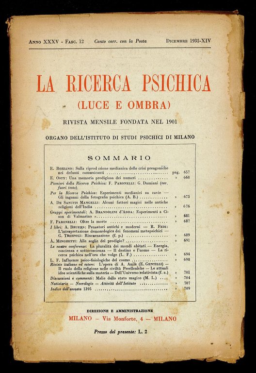 La ricerca psichica (Luce e ombra) 1935 n.12 | Livres anciens et modernes | Organo Dell'Istituto Di Studi Psichici Di Milano, Organo dell'Istituto di studi psichici di Milano