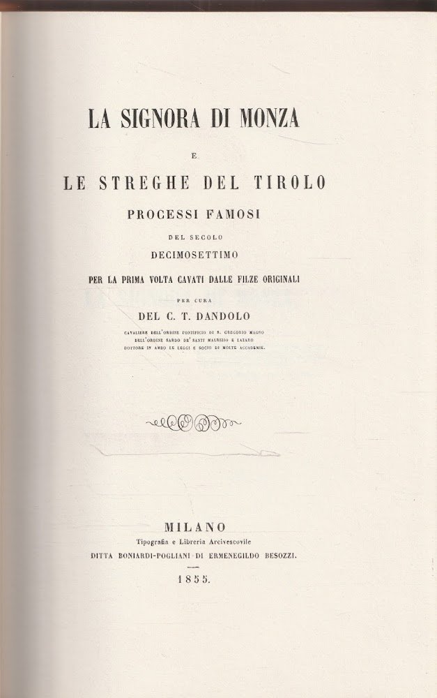 La Signora di Monza e le streghe del Tirolo. Processi famosi del secolo decimosettimo per la prima volta cavati dalle filze originali | Livres anciens et modernes | C.T. Dandolo, a cura di, ,C.T. Dandolo, a cura di