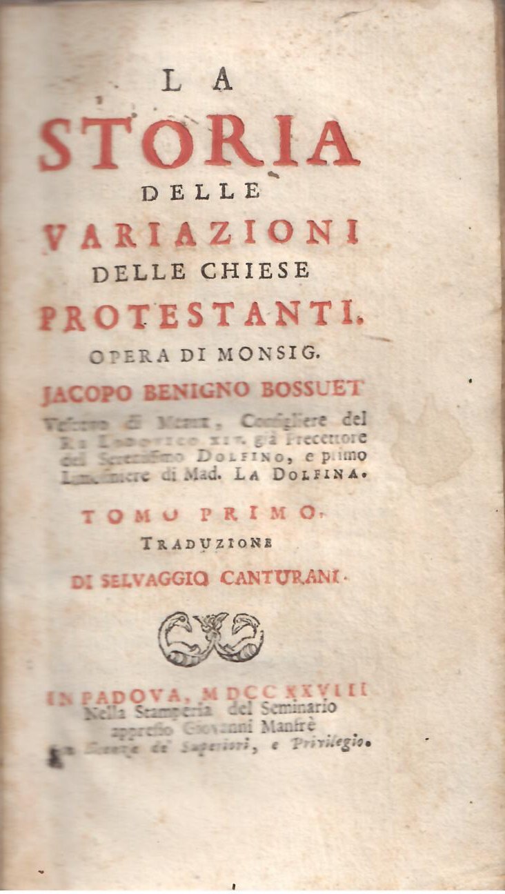 LA STORIA DELLE VARIAZIONI DELLE CHIESE PROTESTANTI | Livres anciens et modernes | Jacopo Benigno Bossuet