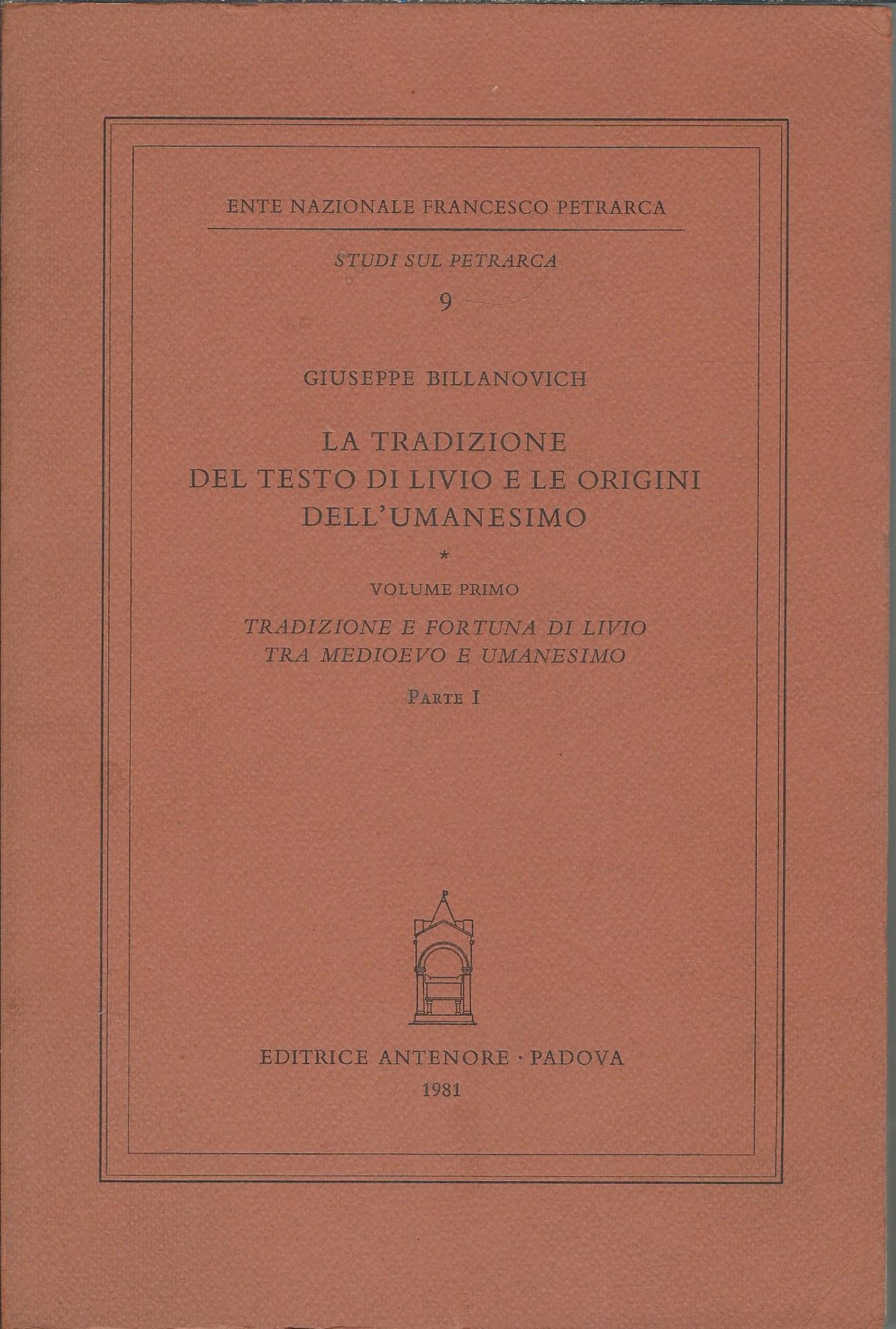 LA TRADIZIONE DEL TESTO DI LIVIO E LE ORIGINI DELL'UMANESIMO - VOLUME PRIMO TRADIZIONE E FORTUNA DI LIVIO TRA MEDIOEVO E UMANESIMO PARTE I