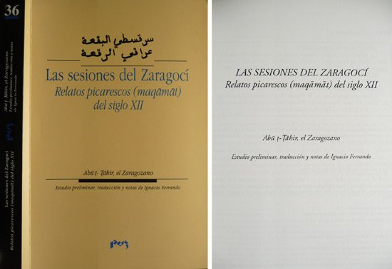 Las Sesiones del Zaragocí. Relatos picarescos [Al-Maqamat al-Luzumiyya] del Siglo XII. Estudio preliminar, traducción y notas de Ignacio Ferrando. | Livres anciens et modernes | Abu Tahir [Abu L-Tahir Muhammad Ibn Yusuf Al-Tamimi Al-Saraqusti, , M. 1143].