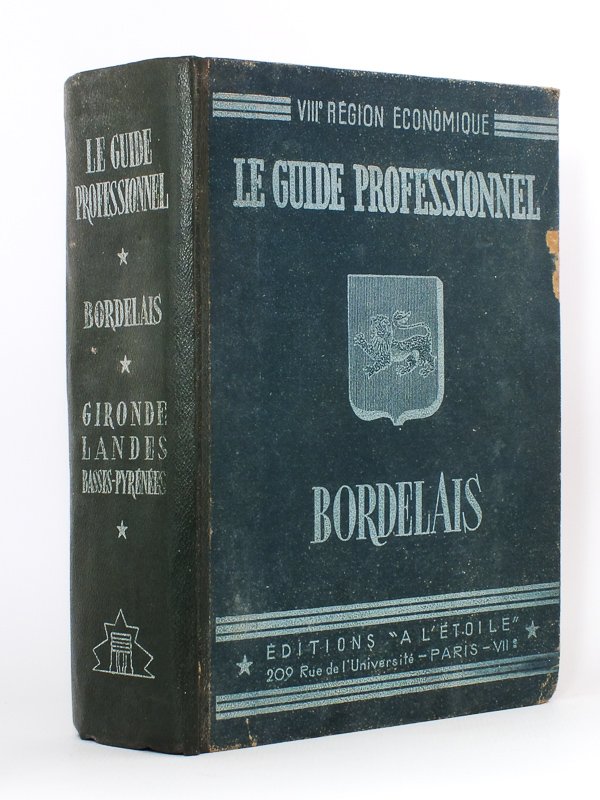 VIIIe Région Economique, 1 vol. très fort in-4 reliure éditeur pleine percaline bleue, Editions "A l'Etoile", Paris, 1948, 1710 pp. Rare exemplaire de cet important annuaire professionnel, dont les informations économiques et publicitaires apportent un riche éclairage sur l'activité économique de l'Aquitaine au lendemain de la Seconde Guerre. Etat très satisfaisant (rel. lég. frottée, avec une anc. mouill. au second plat, bon état par ailleurs)