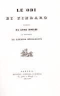 Vol. in 8°, testo su due colonne, coll. 716, ritratto di Pindaro all'acquaforte in antiporta tratto da busto antico. Legatura artigianale mezza pelle, piatti cartonati marmorizzati, titolo in tassello al dorso fregi oro. Condizioni buone.