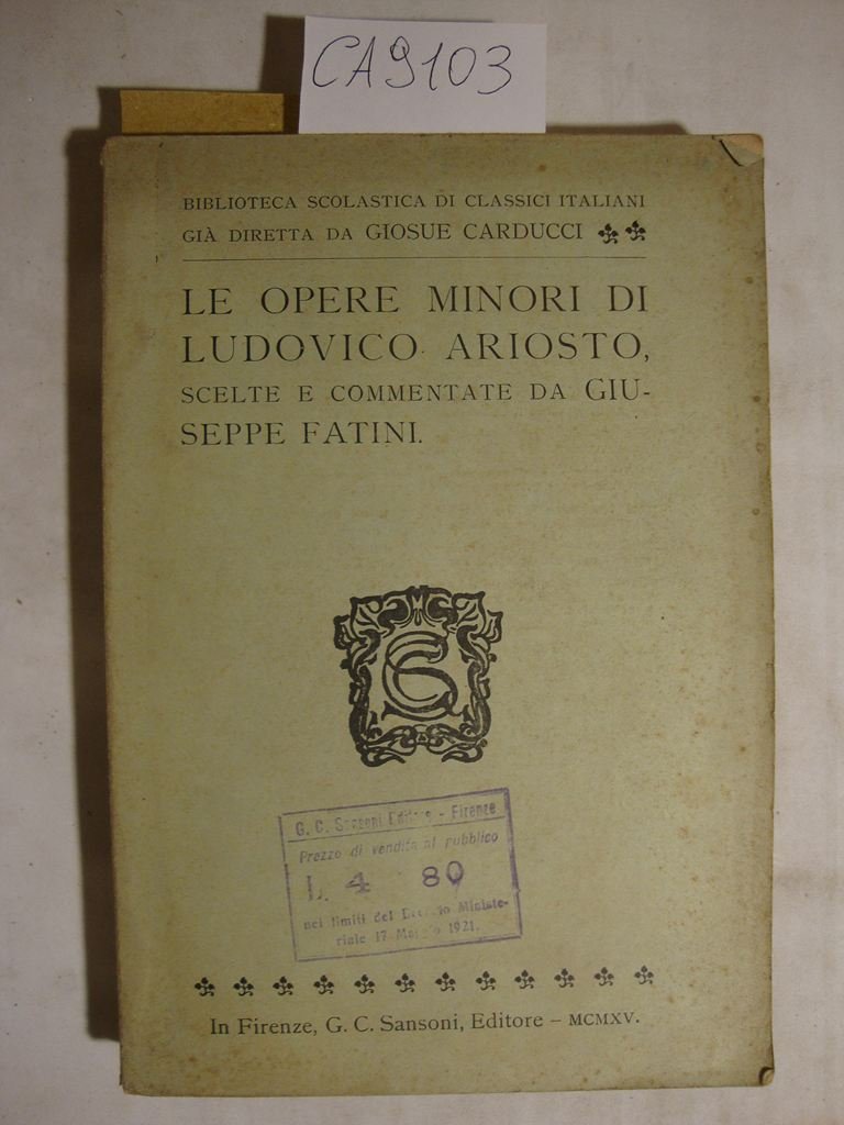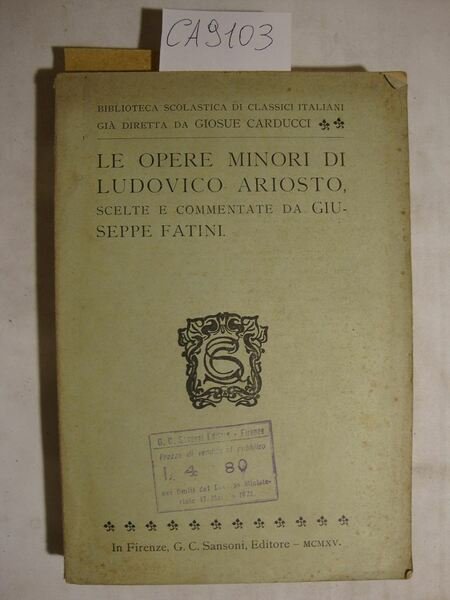 Le opere minori di Ludovico ariosto scelte e commentate da Giuseppe Fatini | Livres anciens et modernes | Carducci Giosue