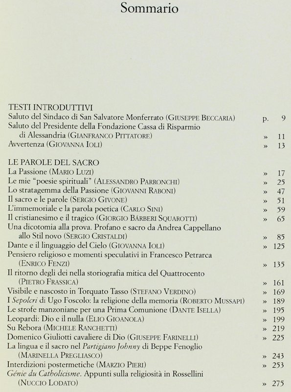 LE PAROLE DEL SACRO. L'esperienza religiosa nella letteratura italiana. Atti del convegno internazionale, San Salvatore Monferrato, 8-9 maggio 2003