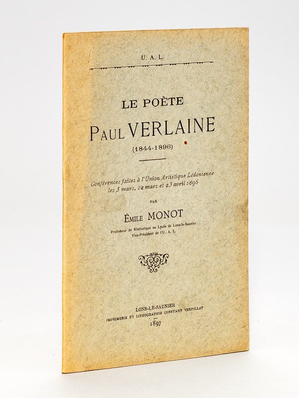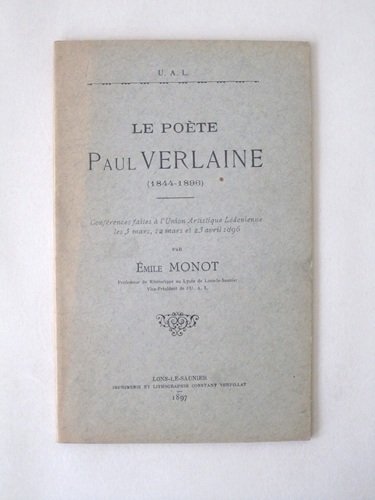 Le Poète Paul Verlaine (1844 - 1896). Conférences faites à l'Union Artistique Lédonienne les 5 mars, 12 mars et 23 avril 1896 | Livres anciens et modernes | Monot, Emile