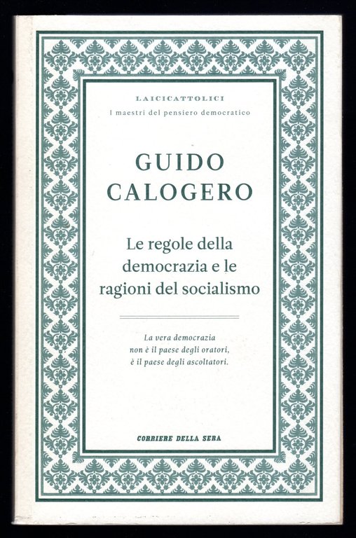 Libro vintage in-16°, brossura con bandelle con 197 pagg, Milano, 2012. Saggi. Dalla bandella: "Guido Calogero è il più «socratico» tra i filosofi del Novecento italiano. Studioso acutissimo del pensiero antico, riconobbe in Gentile - che lo protesse sempre, pur sapendolo antifascista - e Croce i suoi maestri". Prefazione di Armando Torno.