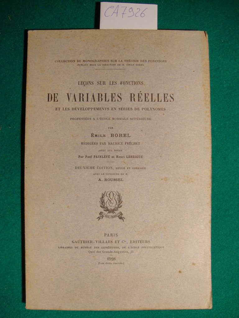 Leçons sur les fonctions de variables réelles et les développements en séries de polynomes professées a l'ècole normale supérieure - Avec des notes par Paul Painlevé et Henry Lebesgue - Avec le concours de M. A. Roussel