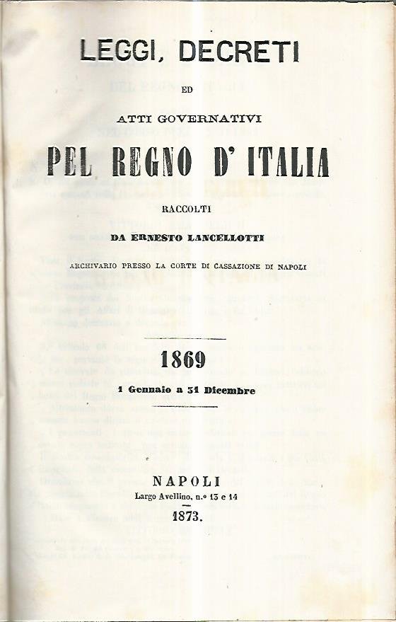Leggi, decreti ed atti governativi pel Regno d'Italia. 1869 1 gennaio a 31 dicembre | Livres anciens et modernes | Ernesto Lancellotti, ,Ernesto Lancellotti
