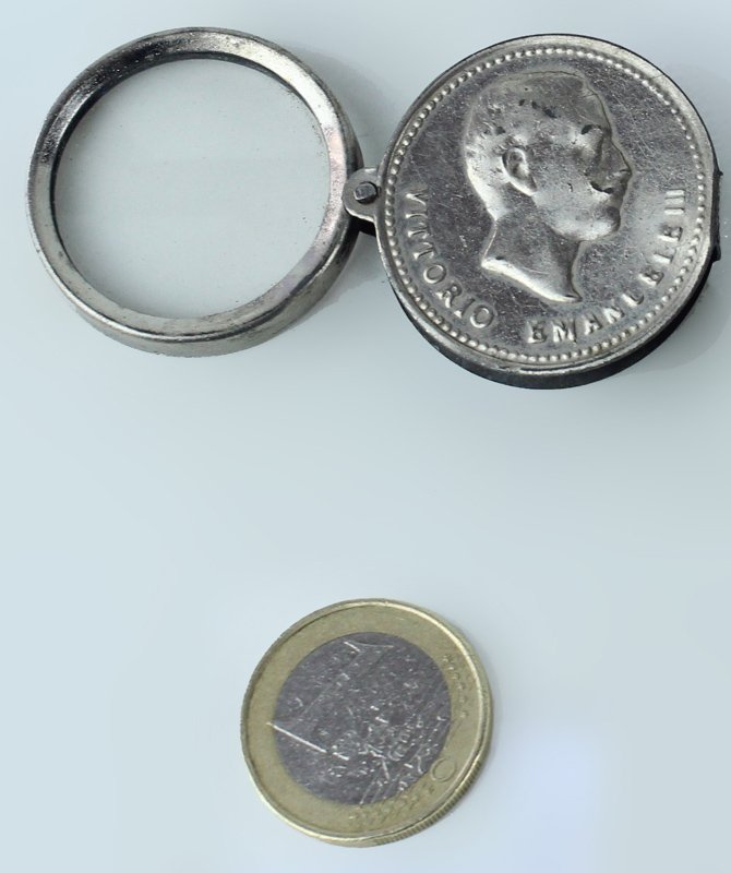 LENTE D'INGRANDIMENTO CON COPERCHIO A FORMA DI MONETA PRIMO '900 | Livres anciens et modernes |