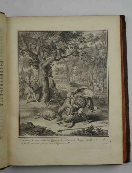 Cm. 29, pp. (8) x, xxvii (1) 424. Ritratto ed antiporta figurata, frontespizio in rosso e nero con incisione centrale, 25 tavole fuori testo e 43 grandi vignette in luogo di testate e finalini. Il tutto finemente inciso in rame da Picart, Dubourg e Debrie. Legatura coeva in piena pelle, dorso rifatto nello stile dell'epoca. Tagli rossi. Ex libris nobiliare inciso. Uno strappetto ricongiunto ad una tavola. Ben conservato. Splendida edizione con illustrazioni che riflettono appieno il gusto barocco del tempo. Le bibliografie la definiscono come una delle produzioni tipografiche più eleganti d'inizio '700.