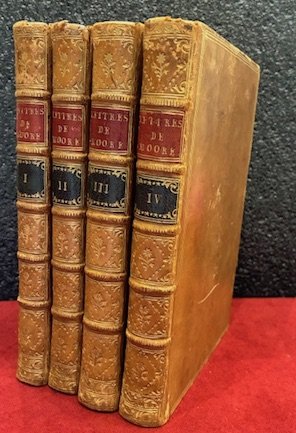 8vo (cm. 20), 4 Voll.; 2 cc.nn., 362 pp.; 2 cc.nn., 362; 2 cc.nn., 423(1) pp.; 2 cc.nn., 422 pp. Fregi sui frontespizi. Testatine, capilettera e finalini xilografici n.t. Legature coeve in vitellino con cornici prp ai piatti. Nervi, ricchi fregi e titoli oro su doppio tassello ai dorsi. Tagli rossi. Carte di guardia bleu. Ex libris araldico ai contropiatti anteriori. Esemplare completo ed in ottimo stato di conservazione. Traduzione francese - dovuta a Henri Rieu - di queste lettere di viaggio del Moore relative a Francia, Svizzera, Italia e Germania. Tra le località toccate nell’itinerario, ricco di notazioni sugli usi e i costumi e sull’organizzazione sociale dei diversi luoghi: Parigi, Ginevra, Losanna, Berna, Strasburgo, Mannheim, Francoforte, Brunswick, Hannover, Potsdam, Berlino, Dresda, Vienna, Venezia, Padova, Ferrara, Bologna, Pesaro, Fano, Senigallia, Ancona, Loreto, Spoleto, Terni, Narni, Civita Castellana, Roma e la campagna di Roma. L’edizione originale inglese (’A View of Society and Manners in Italy, Germany, Switzerland and France’) era apparsa a Londra nel 1779.