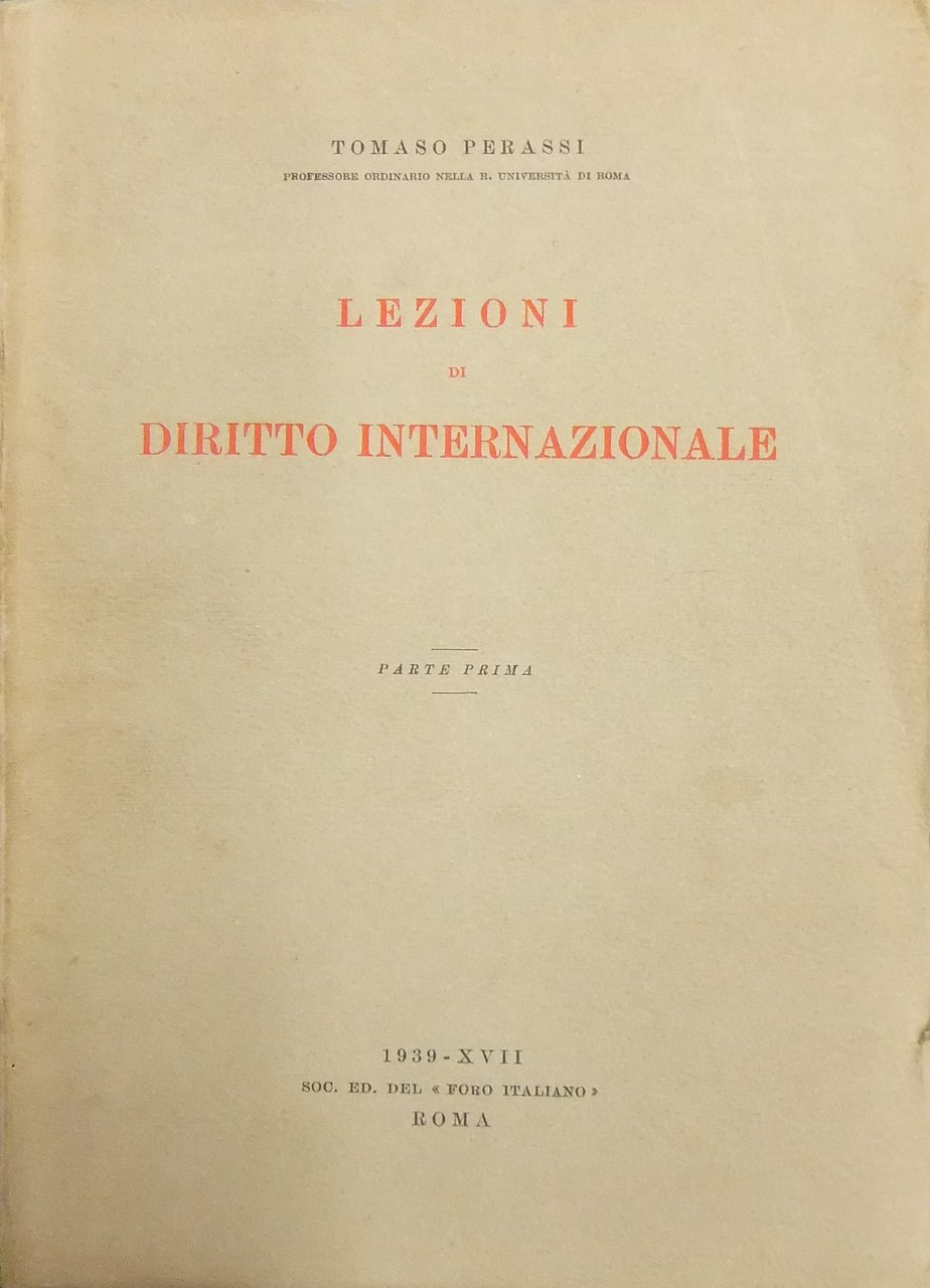 Lezioni di diritto internazionale. Parte I e II | Livres anciens et modernes | Perassi Tomaso (1886-1960)