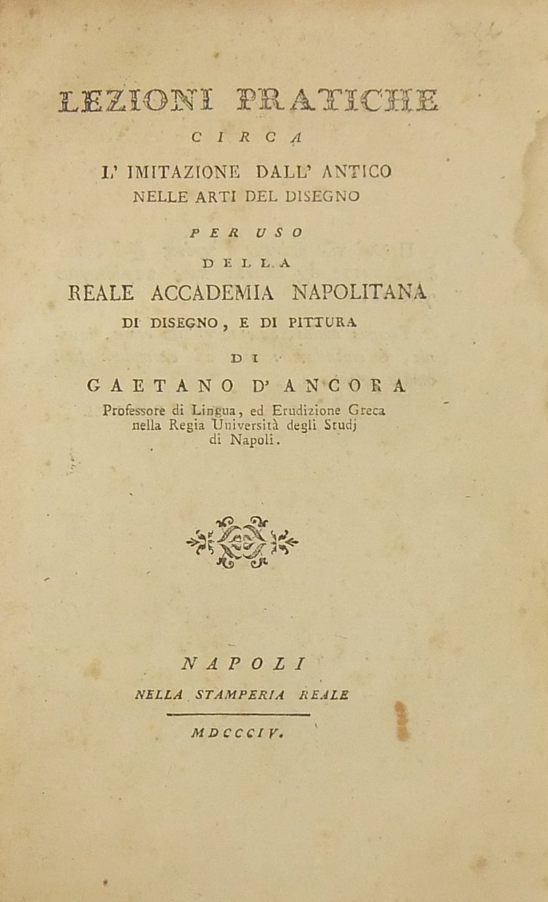 Lezioni pratiche circa l'imitazione dall'antico nelle arti del disegno per uso della Reale Accademia Napolitana di disegno e pittura | Livres anciens et modernes | D'Ancora Gaetano