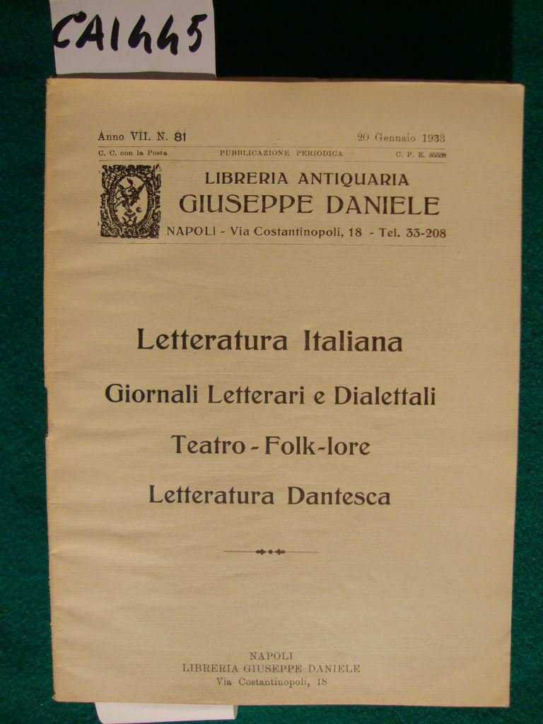 Libreria Antiquaria Giuseppe Daniele - Cataloghi (1933)