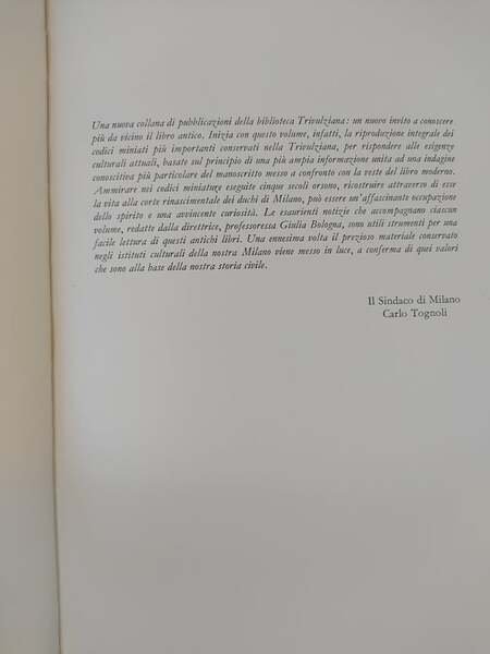 In più, un volume di testo accompagnatorio con commento, analisi e lavoro sulle fonti a cura di Giulia Bologna, direttrice della collana di nuove pubblicazioni della Biblioteca Trivulziana, concepite sotto forma di invito e stimolo "a conoscere più da vicino il libro antico", cfr. breve nota introduttiva del Sindaco di Milano, Carlo Tognoli.