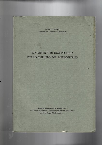Lineamenti di una politica per lo sviluppo del Mezzogiorno. Discorso del 7 feb. 1961 alla camera. | Livres anciens et modernes | Colombo Emilio.