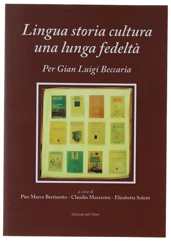 LINGUA STORIA CULTURA UNA LUNGA FEDELTA'. PER GIAN LUIGI BECCARIA. Atti del Convegno Internazionale di studi (Torino, 16-17 ottobre 2008) | Livres anciens et modernes | Bertinetto Pier Marco, Marazzini Claudio, Soletti Elisabetta (A, Cura)