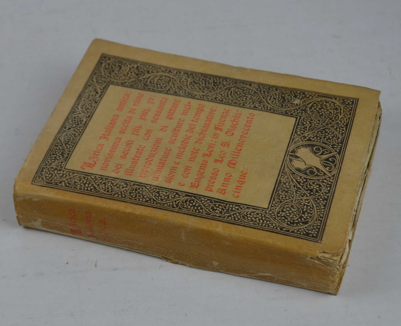 Cm. 18, pp. xxxi, 325. Con 60 tavole f.t. applicate alle carte raffiguranti miniature, sculture, incisioni e melodie antiche. Bross. edit. in carta pergamenata a stampa. Qualche minima traccia d'uso alla cop., peraltro ottima copia. Interessante.