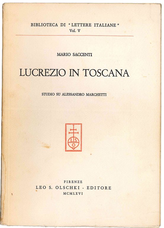 Lucrezio in Toscana. Studio su Alessandro Marchetti | Livres anciens et modernes | SACCENTI, Mario