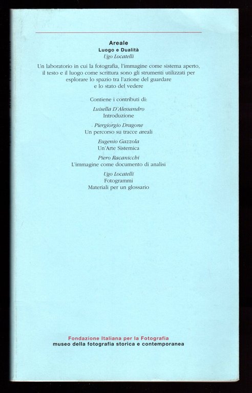 Libro vintage in-8°, brossura con 78 pagg, Milano, 1999. Saggi. Dalla bandella: "La fotografia indaga lo spazio inconscio che si estende tra l'azione del guardare e lo stato del vedere In questo spazio nasce Areale, con il concorso di fonti individuate in epoche e contesti culturali diversi". Figure in nero all'interno del testo. Illustrazioni in bn all'interno e fuori dal testo.