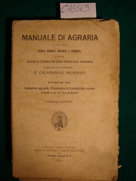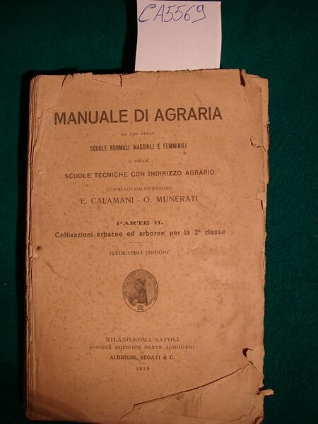 Manuale di agraria ad uso delle scuole normali maschi e femminili e delle scuole tecniche con indirizzo agrario : parte II (Coltivazioni erbacee ed arboree per la 2^ classe) e parte III (Industrie agrarie, Economia e Contabilità rurale per la 3^ classe) | Livres anciens et modernes | Calamani E. - O. Munerati