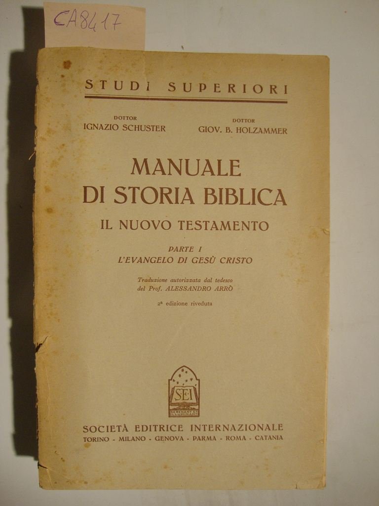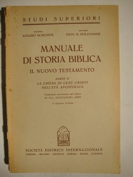 Manuale di Storia Biblica per la cultura e l'insegnamento della religione - Il Nuovo Testamento - (Parte I : L'Evangelo di Gesù Cristo) - (Parte II : La Chiesa e Gesù Cristo nell'età Apostolica) | Livres anciens et modernes | Schuster Ignazio - Holzammer Giov. B., Trad. Alessandro Arrò.