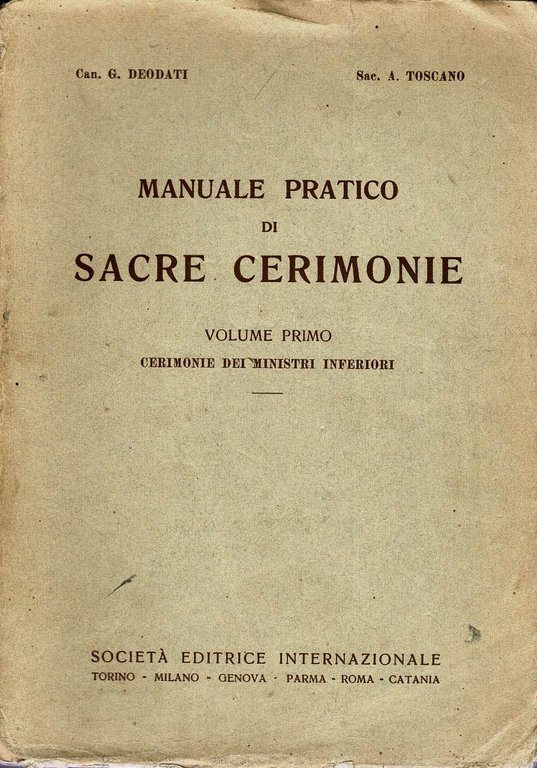 Manuale pratico di sacre cerimonie Volume primo Cerimonie dei ministri inferiori | Livres anciens et modernes | Giovanni Deodati, Alfonso Toscano