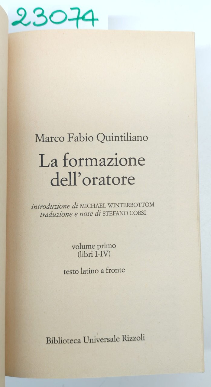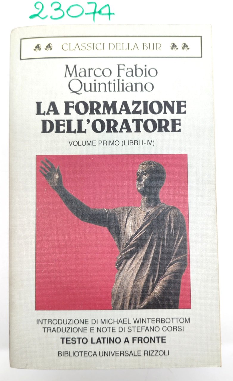 Marco Fabio Quintiliano La formazione dell'oratore 3 volumi 1° edizione 1997