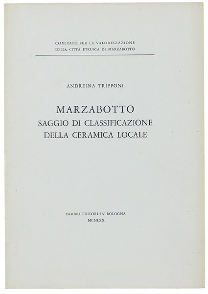 MARZABOTTO. SAGGIO DI CLASSIFICAZIONE DELLA CERAMICA LOCALE. | Livres anciens et modernes | Tripponi Andreina.