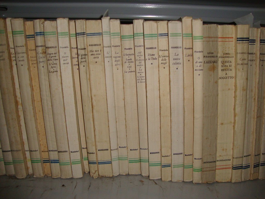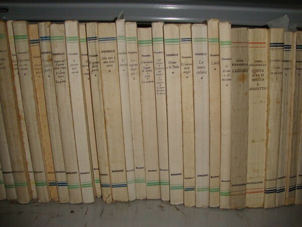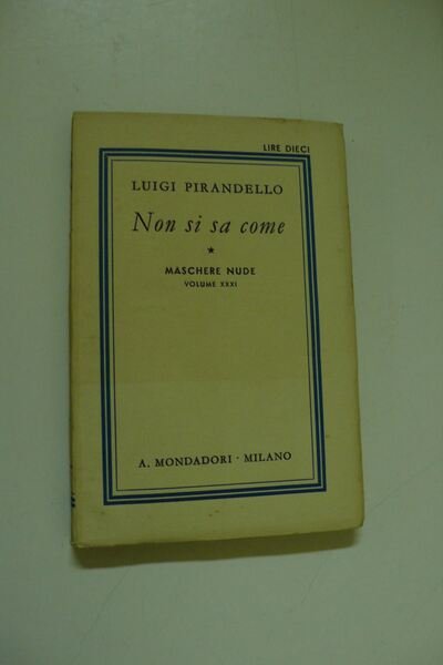 (Collana : Maschere nude - n. SCHEDA UNICA) Raccolta di numeri della Collana Maschere nude (Collana delle opere teatrali di Luigi Pirandello) completa per la sequenza da n° 1 a n° 31, come da distinta titoli che si allega mediante immagine alla presente scheda. Luigi Pirandello (Girgenti, oggi Agrigento, 1867 - Roma 1936) scelse personalmente il titolo per la Collana delle sue opere teatrali - Maschere nude - apparsa presso Bompiani (1920-1929) e successivamente presso Mondadori (1930 e segg.). L'esemplare qui censito è corrispondente alla edizione Mondadori e raccoglie tutto il pubblicato (31 titoli). Di straordinaria rarità, per la sua completezza, si presenta nelle brossure originali, allo stato di nuovo, salvo il normale invecchiamento della carta. Si rinvia all'immagine allegata per l'elenco dei titoli e ad altra immagine fotografica, anch'essa allegata, quale campione di uno degli stessi - DETTAGLIO DELLE CONDIZIONI : Volumi allo stato di nuovo, salvo il normale invecchiamento dovuto al tipo di carta - (64b).