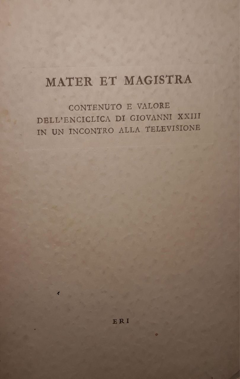 Mater et magistra: contenuto e valore dell'enciclica di Giovanni XXIII in un incontro alla televisione | Livres anciens et modernes | AA.VV., ,AA.VV.