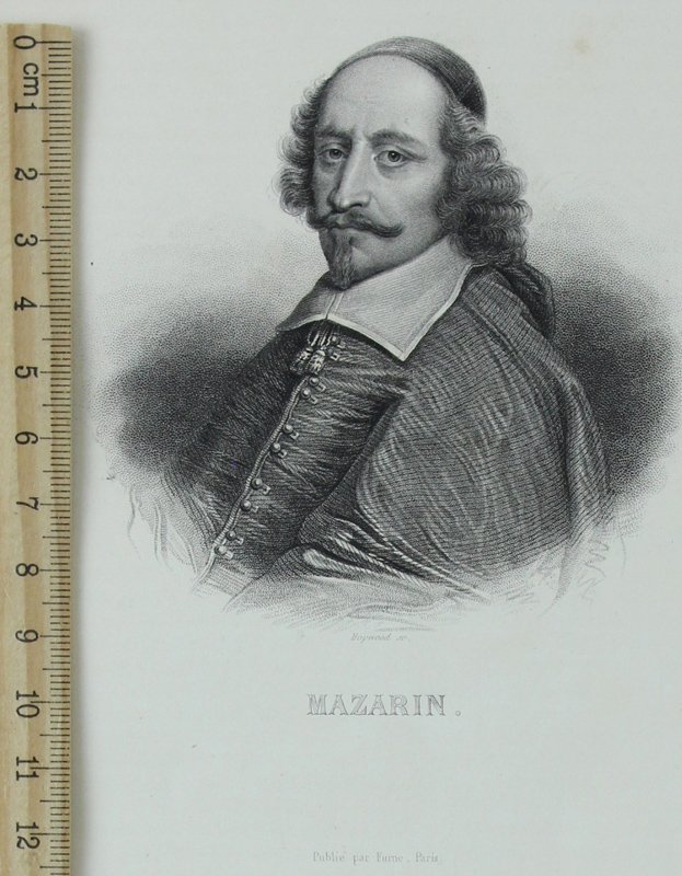 MAZARIN. [Gravure authentique du XIXe siècle - original print]
