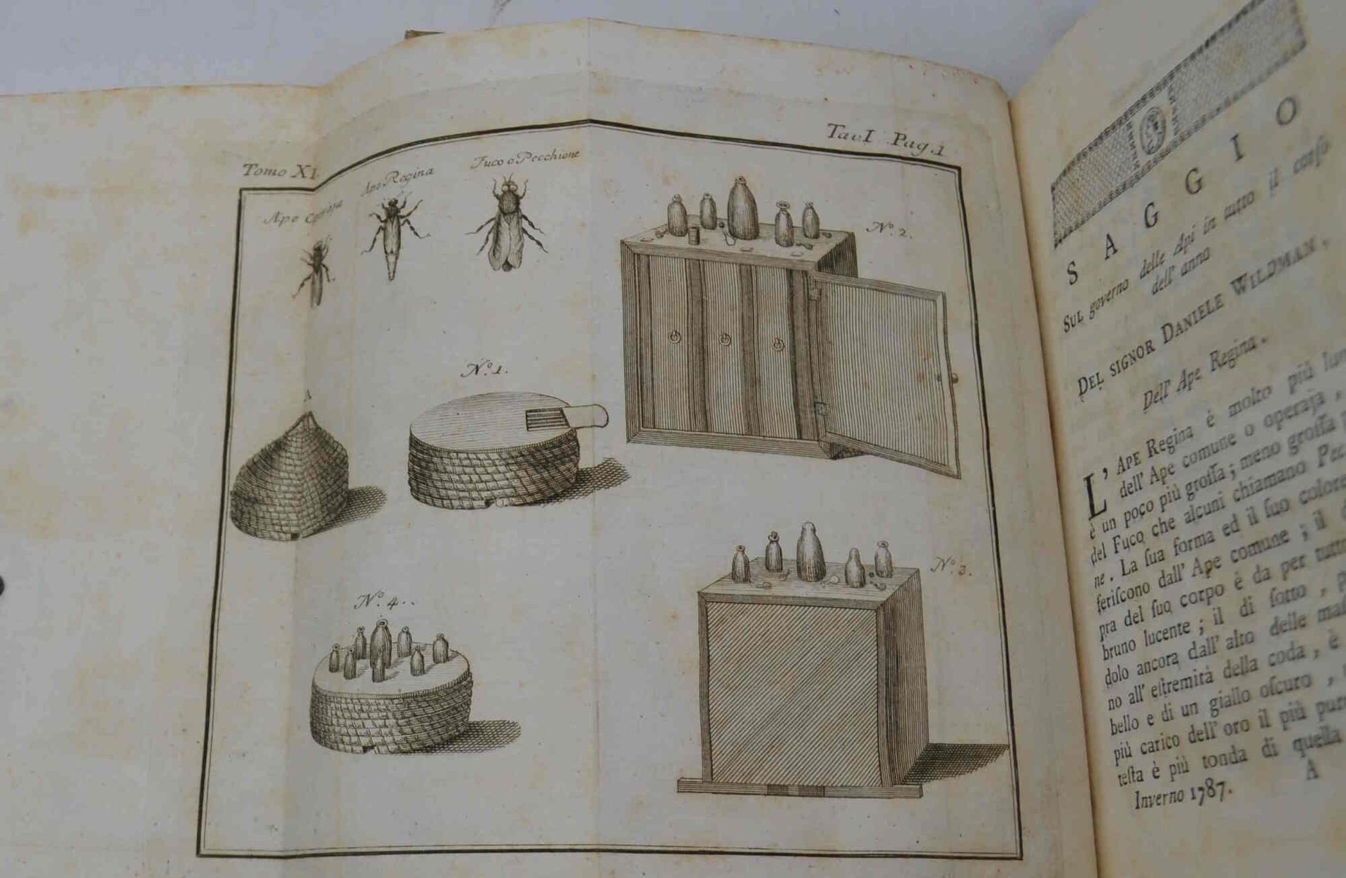 Tredici volumi di cm. 21, pp. 3.000 ca. complessive. Con varie tavole f.t. incise in rame. Legatura coeva in piena pergamena rigida con titoli in oro impressi ai dorsi. Esemplare genuino ed in buono stato di conservazione. Diosponibili 13 (di 15) volumi che compngono l'opera. Mancanti i volumi VI e XV.