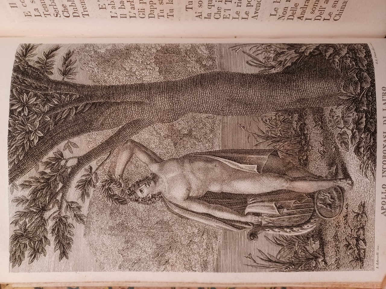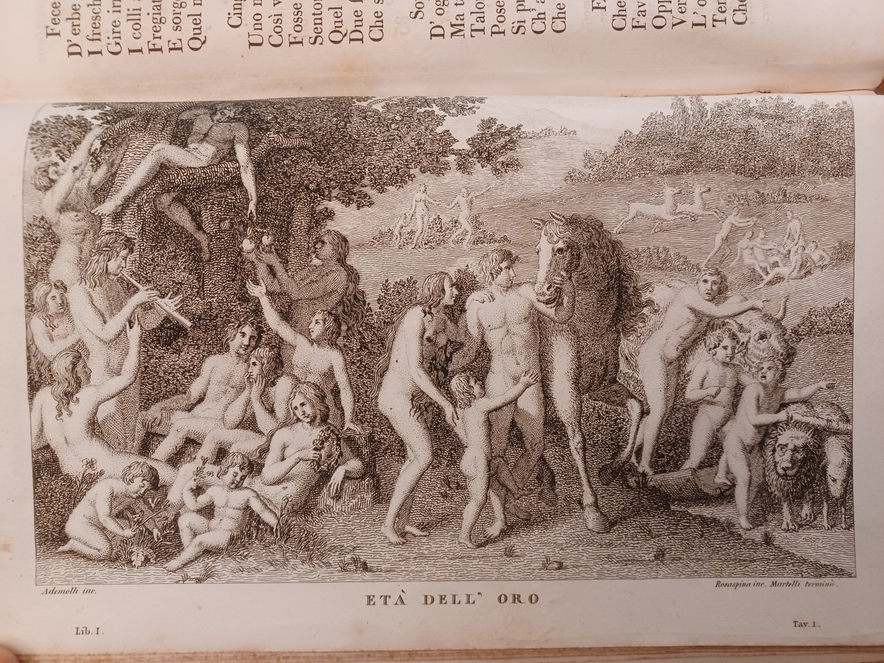 1832. Mezza legatura in pelle con titoli in oro e fregi al dorso, piatto marmorizzato. 5 vol.; Ill. con numerose incisioni; 24 cm. Con testo latino e italiano. Lievi segni del tempo. Piccole lacerazioni ai bordi. Efflorescenze nella norma. Ottime condizioni.