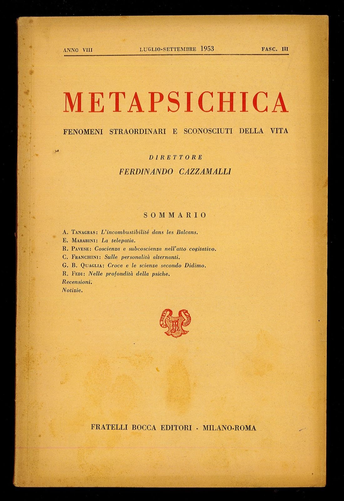 Metapsichica Fenomeni Straordinari e Sconosciuti della Vita 1953 n.III | Livres anciens et modernes | Cazzamalli Ferdinando, Cazzamalli Ferdinando