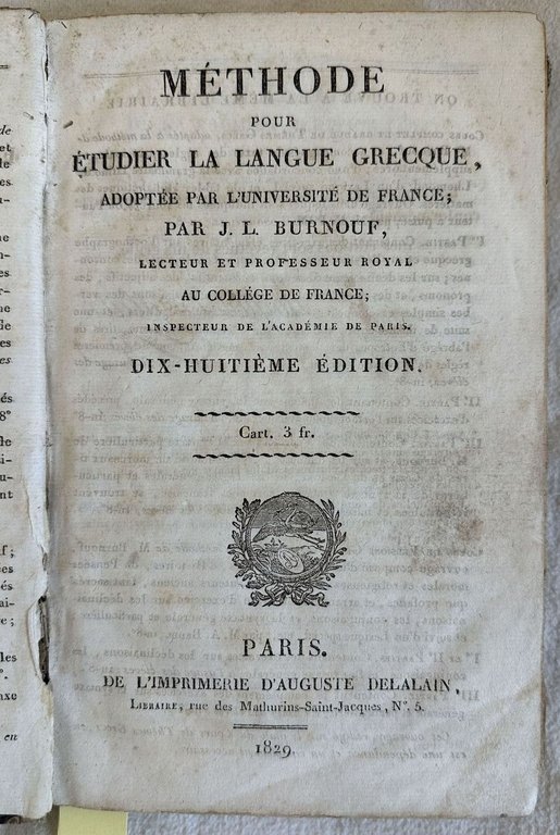 METHODE POUR ETUDIER LA LANGUE GRECQUE ADOPTEE PAR L'UNIVERSITE DE FRANCE | Livres anciens et modernes | J. L. Burnouf