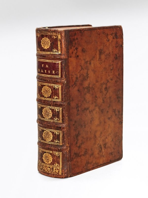 1 vol. in-12 reliure de l'époque pleine basane marbrée, Mille et Une Fadaises. Contes à dormir de bout. Ouvrage dans un gout très moderne : A Baillons, Chez l'Endormy, à l'Image du Ronfleur, 1 f., 113 pp. ; 1 f. blanc ; pp. 3-119 (La Princesse laponoise, histoire héroï-comique, sans page de titre) [ G. Smith, Londres, 1738 ] ; pp. 3-115 (La Princesse Laponoise, histoire Galante et Littéraire Seconde Partie. L'Impatient Opéra comique, sans page de titre) ; 94 pp. (Le Phénix Conjugal, Nouvelle du Temps, sans page de titre [par De Villeneuve, Amsterdam, 1735 ] ) ; 115 pp. ( Les Amusemens de la Campagne, ou le Défi Spirituel, sans page de titre [par le Chevalier de Vignacourt, Robinet, 1724 ?] ) ; Chez Antoine de Heuqueville, Paris, 1732, 4 ff. et 49 pp. (Eloge de la Méchante Femme, dédié à Mademoiselle Honesta) [par Louis Coquelet ] Bel exemplaire en reliure d'époque de ce recueil de divers titres dont l'édition originale des "Mille et Un Fadaises", le second ouvrage publié par Jacques Cazotte. Très bel exemplaire, avec la signature de Favart sur la page de titre des "Mille et Une Fadaises".