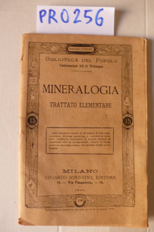 Mineralogia, trattato elementare | Livres anciens et modernes | Autore Non Identificato