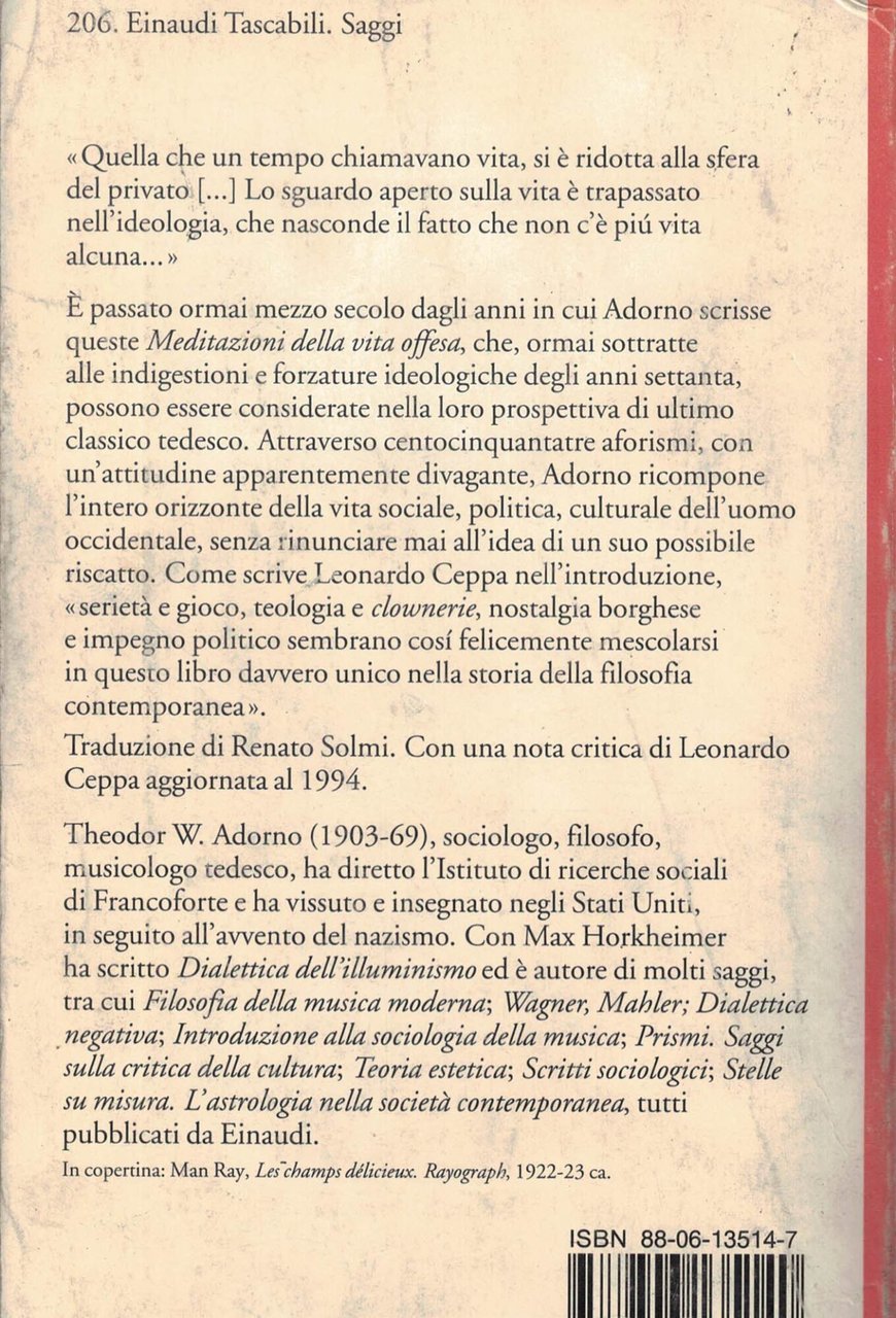 Minima moralia. Meditazioni della vita offesa | Livres anciens et modernes | Adorno, Theodor W., ,Adorno, Theodor W.