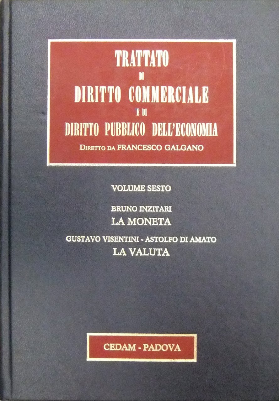 Moneta e valuta. La moneta (Inzitari). La valuta (Visentini e Di Amato) | Livres anciens et modernes | Inzitari Bruno - Visentini Gustavo - Di Amato Astolfo