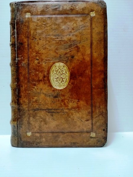 In 4°, piena pelle, cc.nn 6 + pp. 857 + cc.nn. 45. Nervi. Fregio al centro dei piatti e lettere al d. in o. . Front. fig. con marca tipografica, altra marca tipografica al centro dell'ultima p. Lievi mende alla cop. Fioriture. Appunti manoscritti sul primo foglio bianco. Opera che raccoglie scritti di Plutarco nei campi dell'etica, religione, fisica, storia naturale, musica, politica, filosofia e letteratura.
