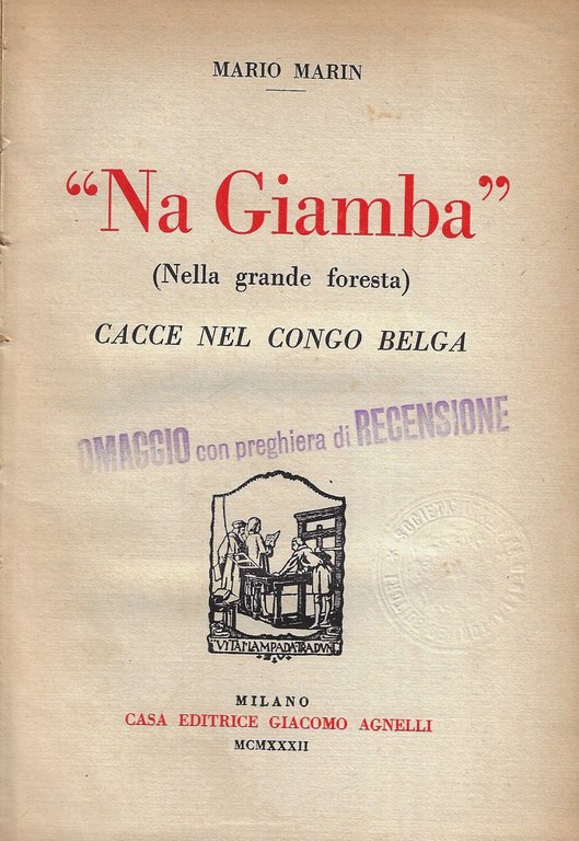 "Na giamba" (Nella grande foresta). Cacce nel Congo belga | Livres anciens et modernes | Marin, Mario, ,Marin, Mario
