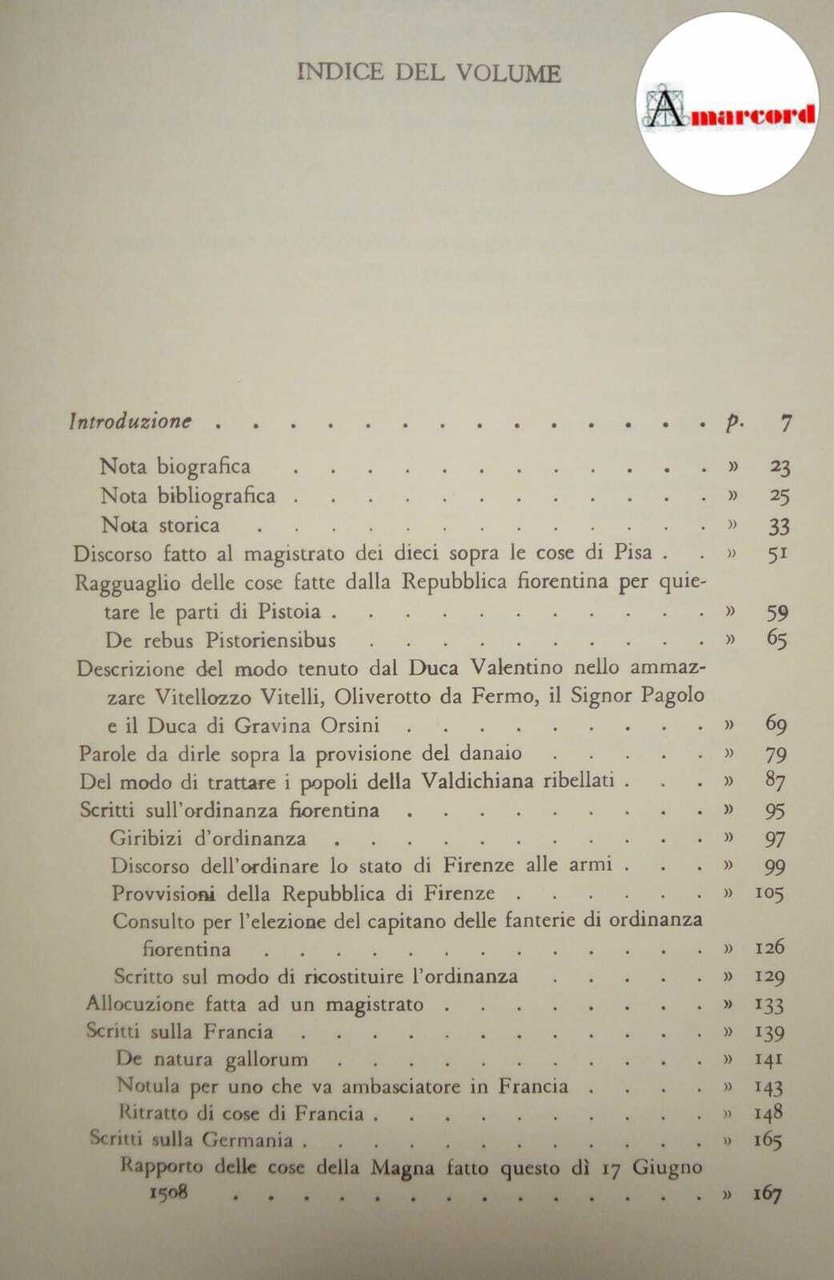 Niccolo Machiavelli. Opere. Utet. 1973. Vol. II