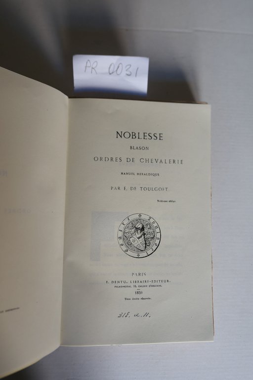 Noblesse, blason, ordres de chevalerie, manuel Heraldique